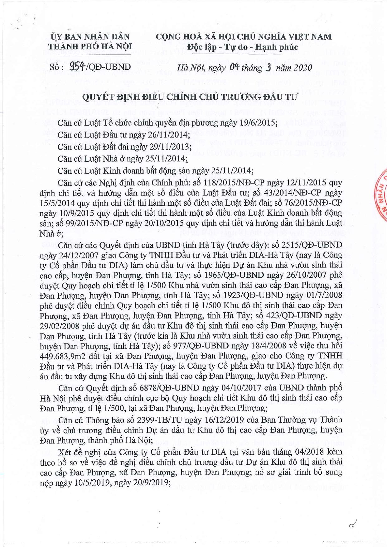 2020-0304G-954-UBND. Quyết định điều chỉnh chủ trương đầu tư